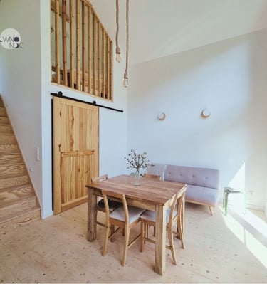 W obydwu domkach zadbaliśmy o każdy detal, aby zapewnić Ci komfort – z dala od codziennego zgiełku, blisko natury.